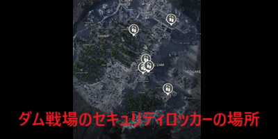 ダム戦場では、主に管制塔オフィス裏や赤い湖のバルコニー周辺で確認されています。比較的見つけやすい場所に配置されていますが、開けた場所にあるため、周囲の索敵を徹底してからアクセスしましょう。