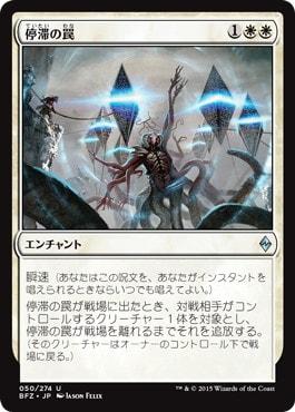 白緑カラーはメインの除去を「停滞の罠」2枚しか採用しておらず、「停滞の罠」は「大天使アヴァシン」や「奔流の機械巨人」といったフィニッシャーを除去することができるため、無駄になることがありません。